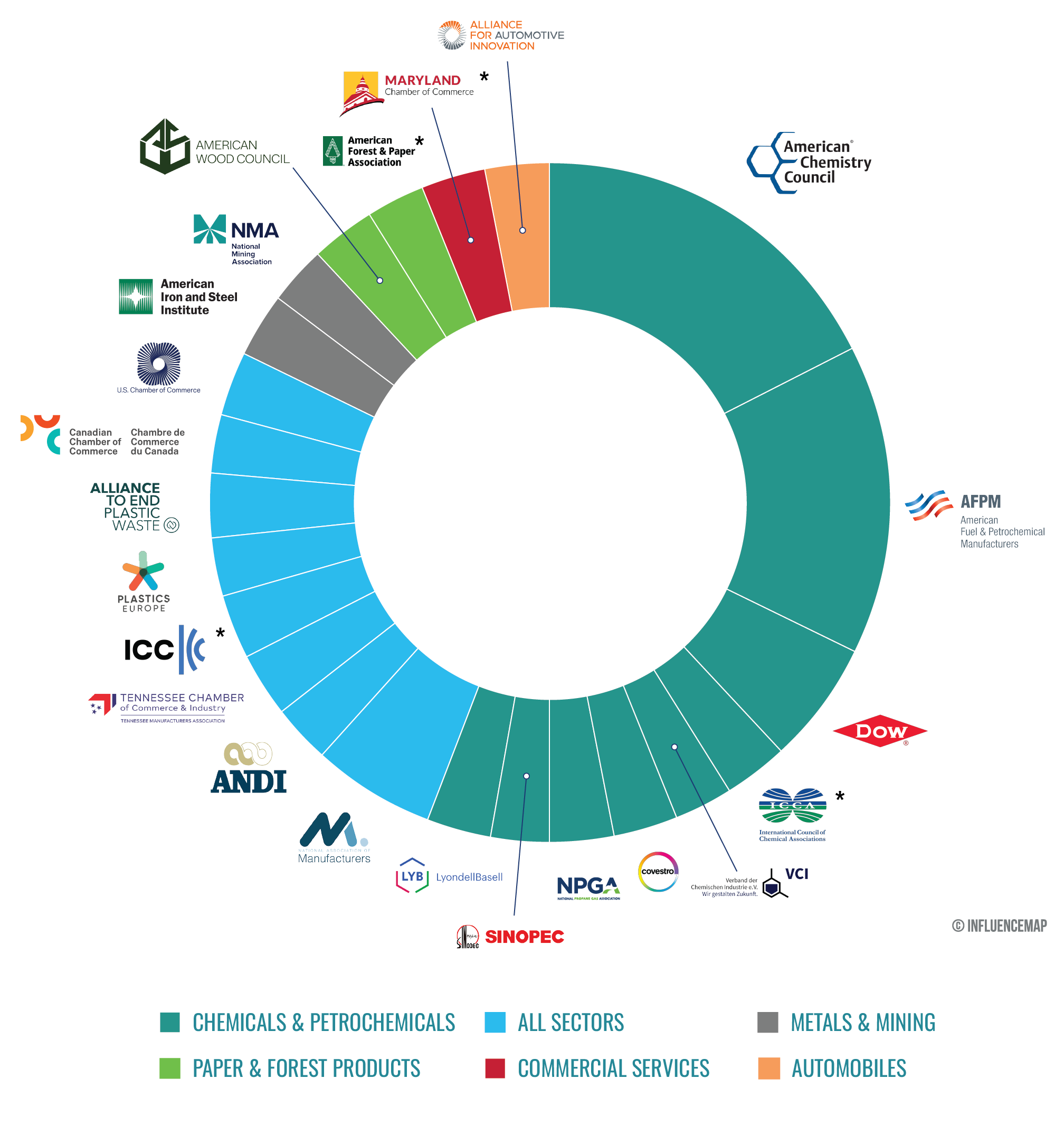 Industry associations were particularly active in opposing the Treaty. A total of 19 associations were found to take negative positions on the Treaty, with more than 41% of negative advocacy originating from only five industry associations in the chemical and petrochemical sectors—American Fuel & Petrochemical Manufacturers (AFPM), the American Chemistry Council (ACC), the German Chemical Industry Association (VCI), the National Propane Gas Association (NPGA), and the *International Council of Chemical Associations (ICCA).
