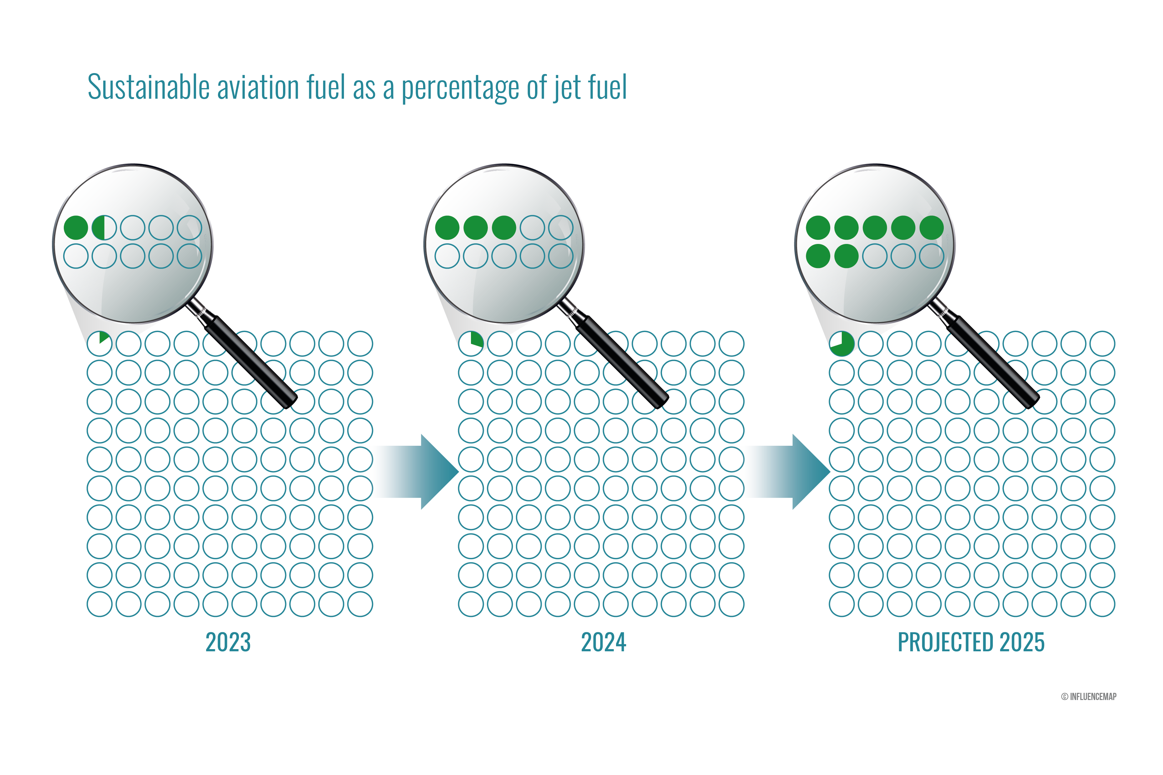 SAF production is currently lagging behind projections – despite production having doubled between 2023 and 2024, SAF accounted for just 0.3% of global jet fuel supply in 2024, and is projected to make up 0.7% in 2025. However, the International Air Transport Association (IATA) projects that jet fuel consumption will also grow, increasing from 99 billion gallons in 2024 to 103 billion gallons in 2025, resulting in approximately 985 million tons of CO₂ emissions. More recently, the term ‘sustainable aviation fuel’ has come under scrutiny; an Opportunity Green July 2025 release found that SAF is an imprecise "catch-all term" obscuring significant differences between fuel types that could mislead consumers and investors, and exposes companies to legal, regulatory and reputational risks.