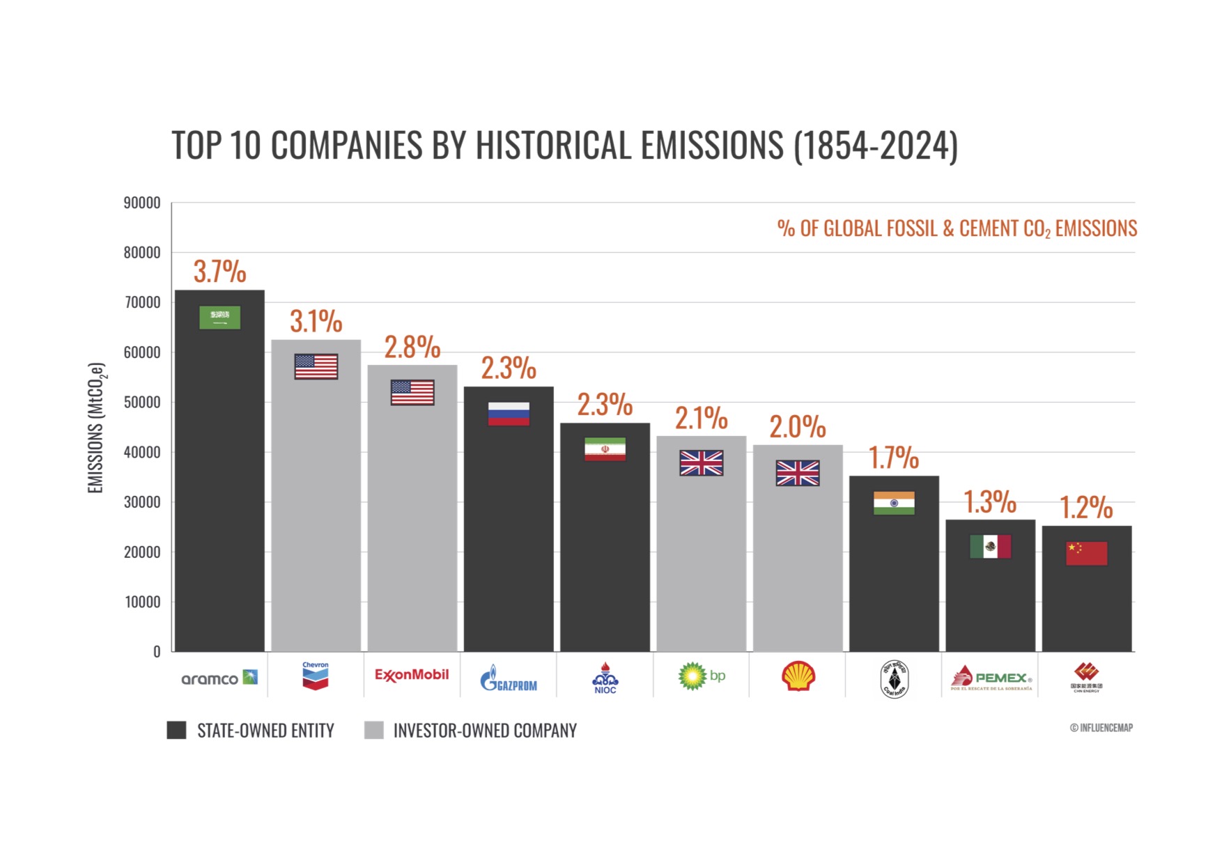 The Carbon Majors dataset is the only dataset of its kind, tracking emissions from the world’s largest oil, gas, coal, and cement producers going back to 1854. Now updated with 2024 data, this new analysis reveals that 70.0% of anthropogenic fossil CO₂ emissions since the start of the Industrial Revolution can be traced to the 178 corporate and state-producing entities in the database. Over this period, just 22 companies accounted for one-third (33.4%) of global fossil CO₂ emissions.
